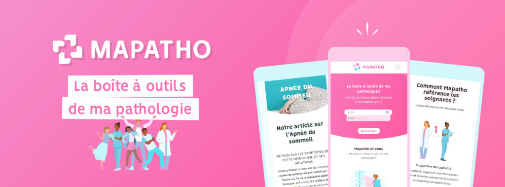 Mapatho est un véritable compagnon au quotidien permettant aux malades chroniques de trouver facilement et rapidement un soignant expert de sa maladie chronique (recommandés par d’autres patients), une liste d’associations de patients, des conseils sur des produits et des services digitaux pour mieux vivre au quotidien avec la maladie ainsi que des ressources vidéos bien-être.
